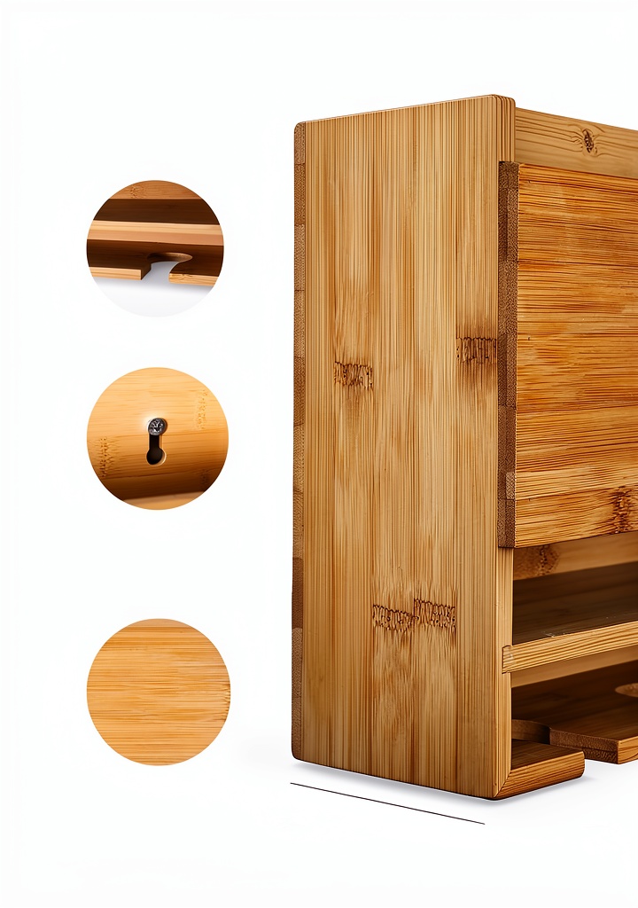 The wine rack is constructed from high-quality bamboo, known for its strength and sustainability, ensuring it withstands daily use while maintaining an elegant appearance.